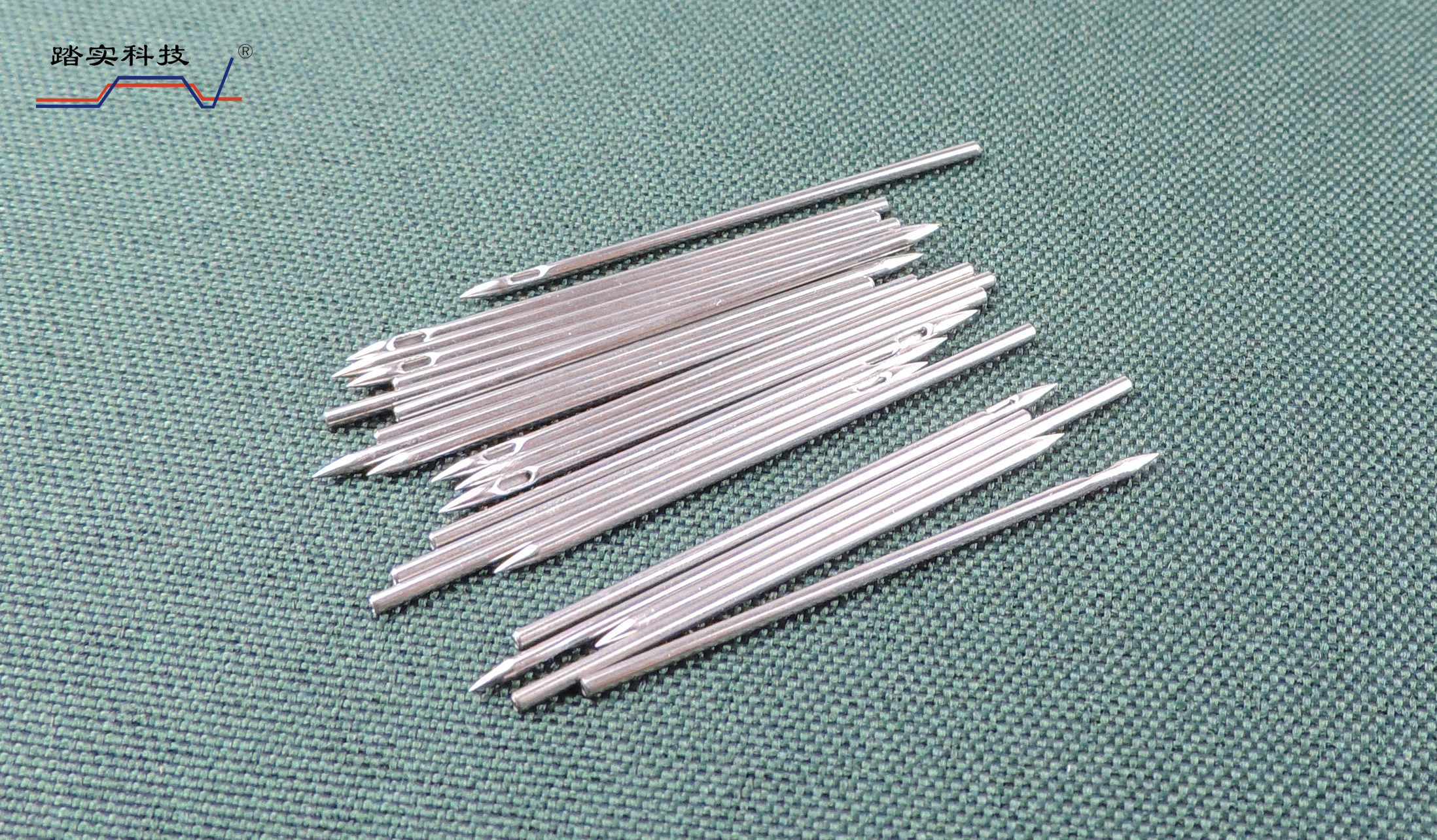 再擰緊不能漏氣。針尖不要超出針頭導板。下針頭安裝方法與上針頭相同,方向相反。